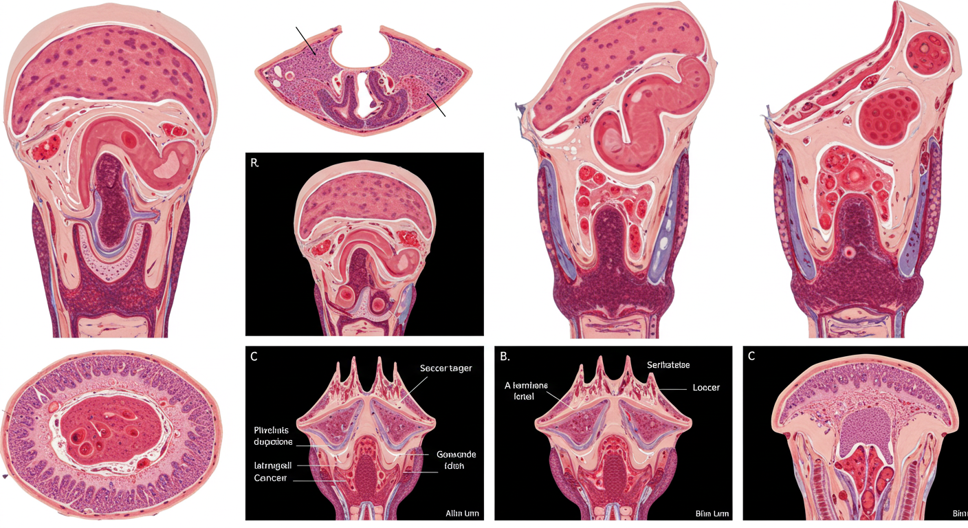 - 성문하부암 (Subglottic Cancer): 성대 아래쪽에서 발생하는 암으로, 전체 후두암의 5% 미만을 차지하는 드문 형태예요. 초기 증상이 거의 없어서 진단이 어려운 편이고, 진행될수록 호흡 곤란이나 기침 같은 증상이 나타날 수 있어요.